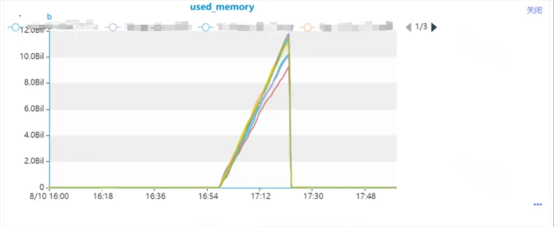 随即查看服务相关监控,判断是业务流量激增带来的内存短时间增高,或是发生了内存泄漏。