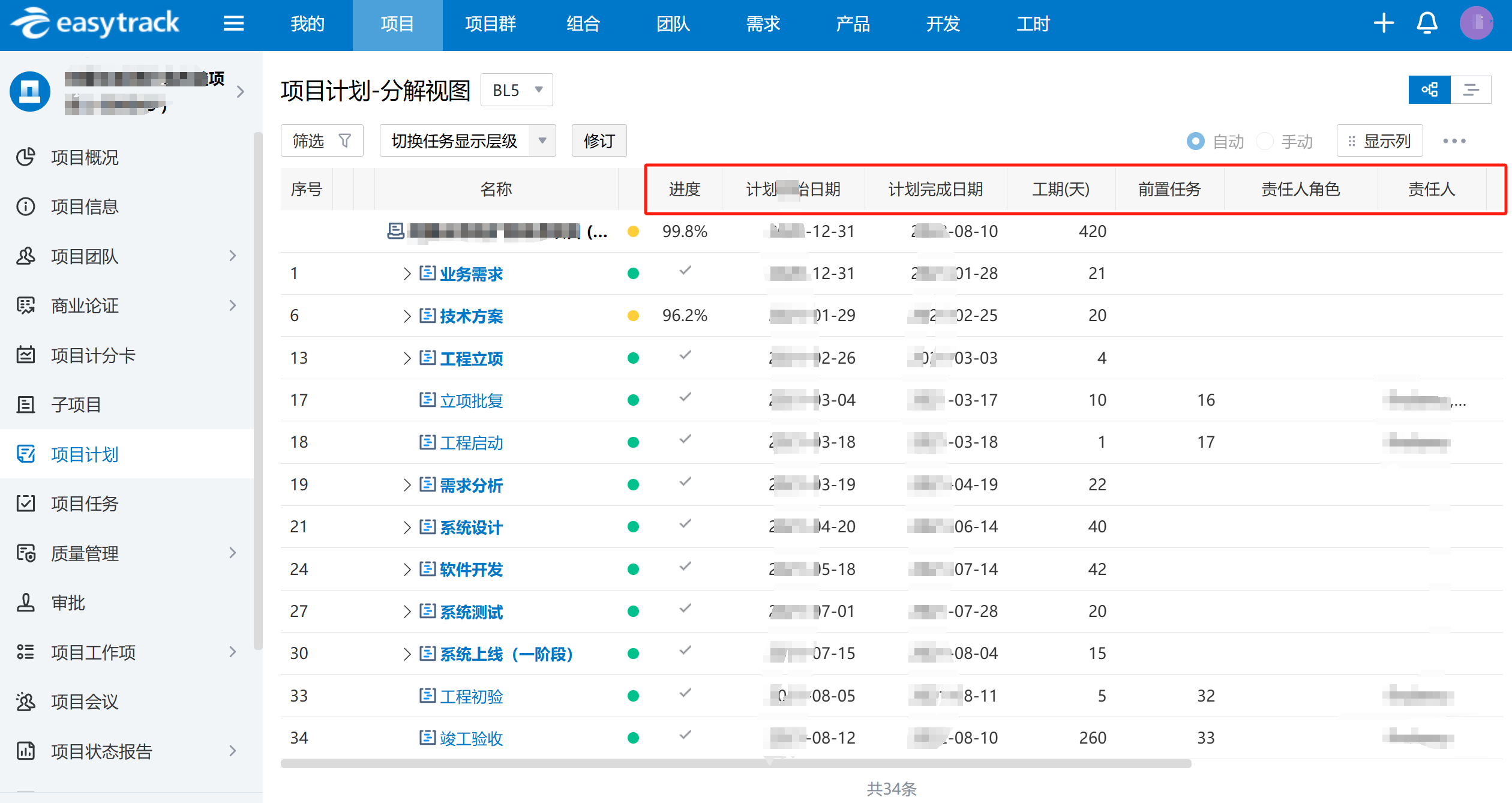 借助专业的项目管理工具(易趋)可以从多个方面为PMO和项目经理赋能,便于他们高效协作。