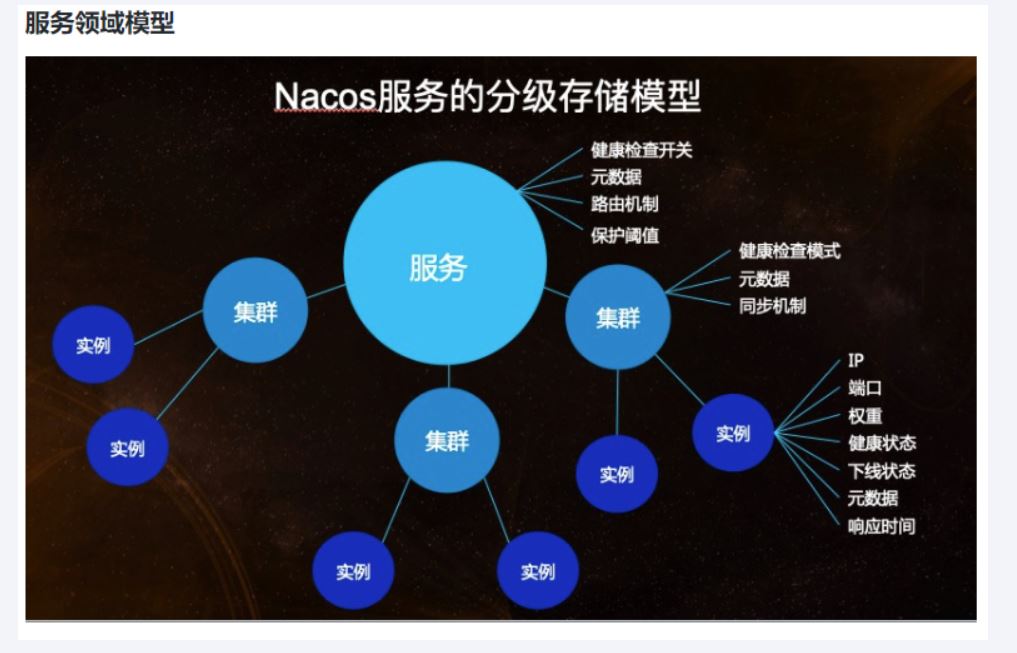 | Service就是微服务 | 一个Service可以包含一个或者多个Cluster(集群),Nacos默认Cluster是DEFAULT,Cluster是对指定微服务的一个虚拟划分。见下一节:服务领域模型-补充说明 |