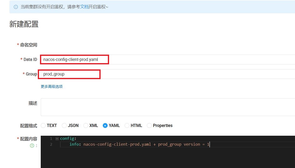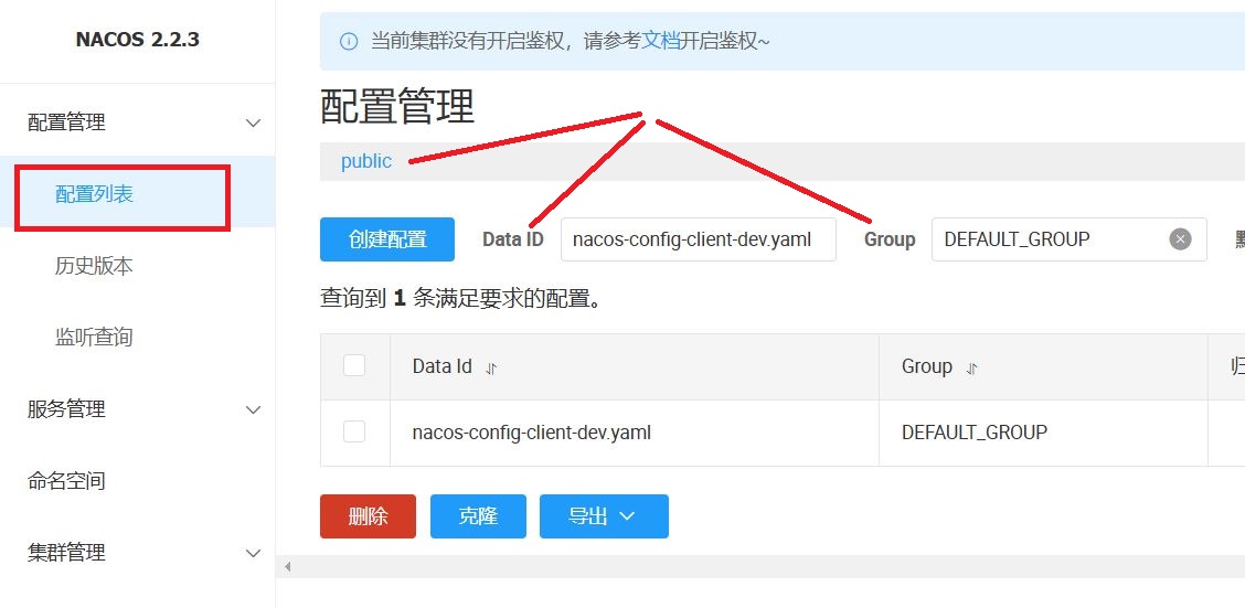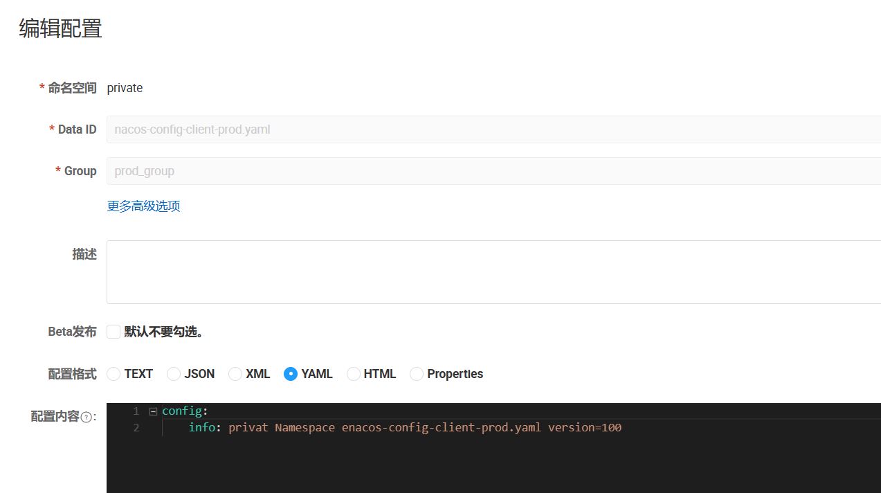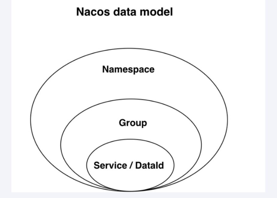 | 2 默认值 | 默认情况:Namespace=public,Group=DEFAULT_GROUP。Nacos默认的命名空间是public,Namespace主要用来实现隔离。比方说我们现在有三个环境:开发、测试、生产环境,我们就可以创建三个Namespace,不同的Namespace之间是隔离的。Group默认是DEFAULT_GROUP,Group可以把不同的微服务划分到同一个分组里面去 |