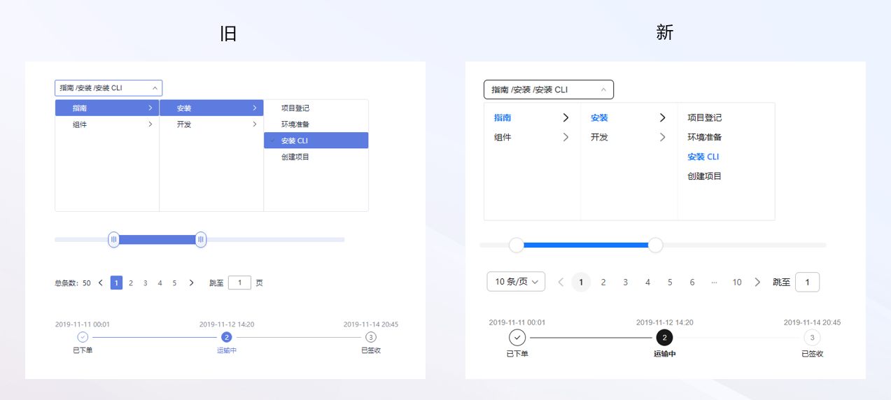于是我们和设计师同事携手一起,对 TinyVue 组件做了全面的 UI 升级,适配了一套更符合现代审美的设计规范:OpenTiny Design,这套全新的设计规范,是我们的设计师同事结合华为云的业务特点和最新的设计趋势打磨出来的,目前 TinyVue 所有组件均已支持 OpenTiny Design 设计规范。