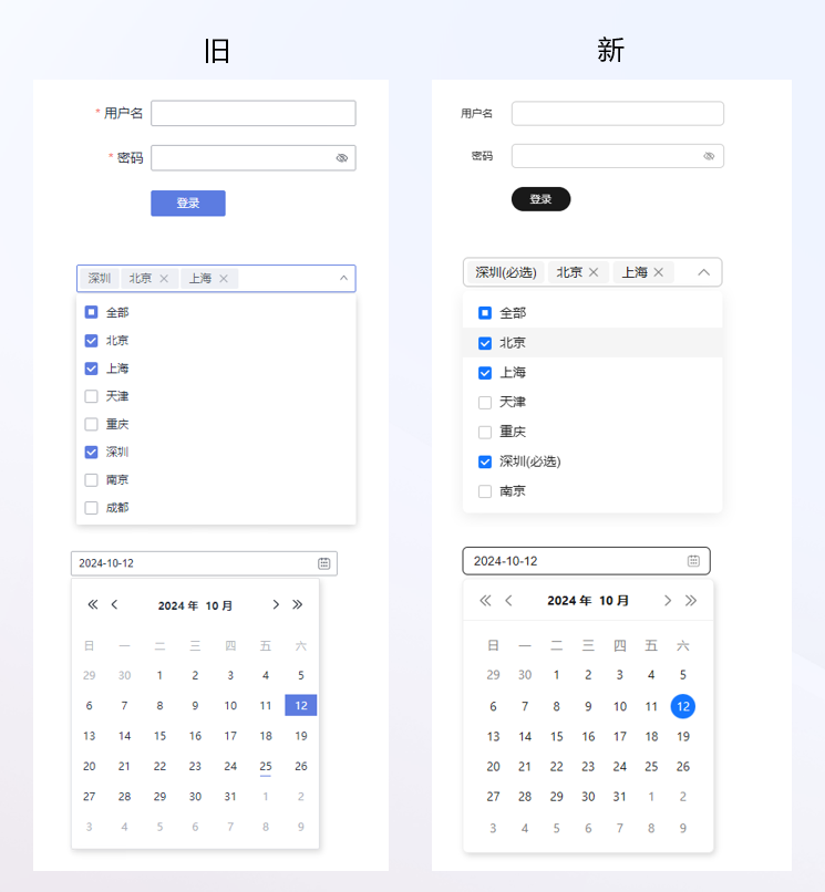 所有的输入框类的组件边框颜色都比之前淡一些,不会太突兀,并且也更圆润。
