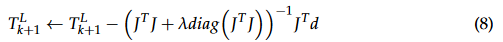 f 中的每条线代表一个特征点。下一个要求是求解雅可比矩阵。最后采用LM方法进行优化: