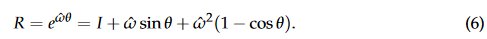 由于旋转矩阵的求导非常复杂,因此通过Rodrigues公式将旋转矩阵R展开如下: