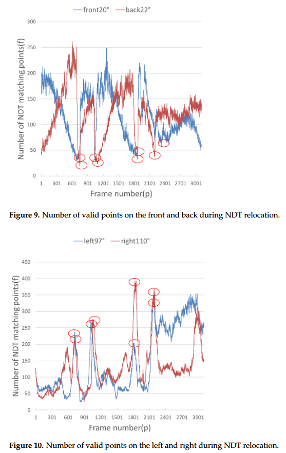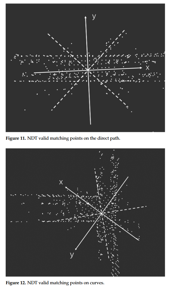 在无损检测匹配点数量大致的情况下,只需要较小的激光雷达视场角即可使用之前的无损检测匹配点。正面NDT匹配点也存在较大误差。这体现了前后端NDT匹配点的鲁棒性。