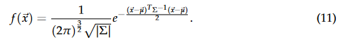 第一步是将3D离线点云图网格化,使用小立方体划分扫描点的整个空间,对于每个网格,根据网格内的点计算其概率密度函数。这可以描述为: