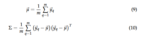 其中 → μ 为离线地图网格正态分布的均值,m 表示离线地图网格中的点数,q 表示离线地图网格中的第 q 个点,y → q=1,… ,m 为离线地图网格中所有扫描点,Σ 表示离线地图网格的协方差矩阵。网格的概率密度函数可以描述为: