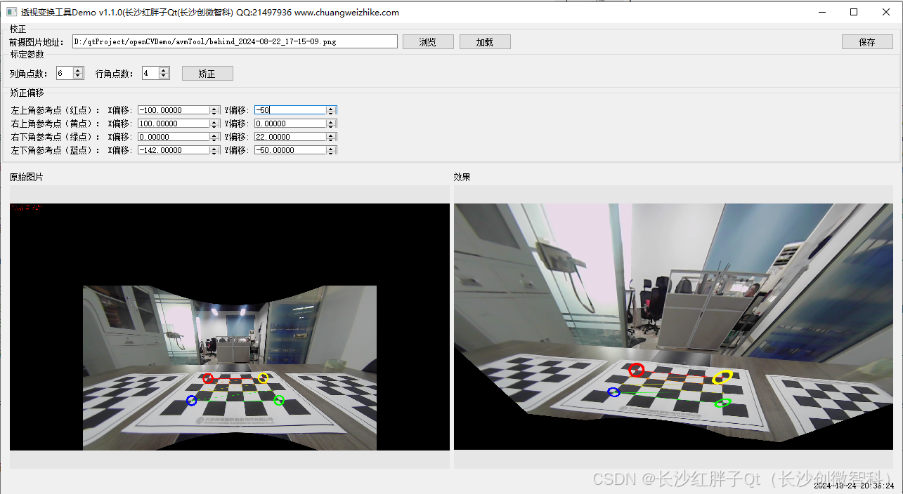 《项目实战:Qt+OpenCV透视变换工具v1.1.0(支持打开图片、输出棋盘角点、调整偏移点、导出变换后的图等等)》
