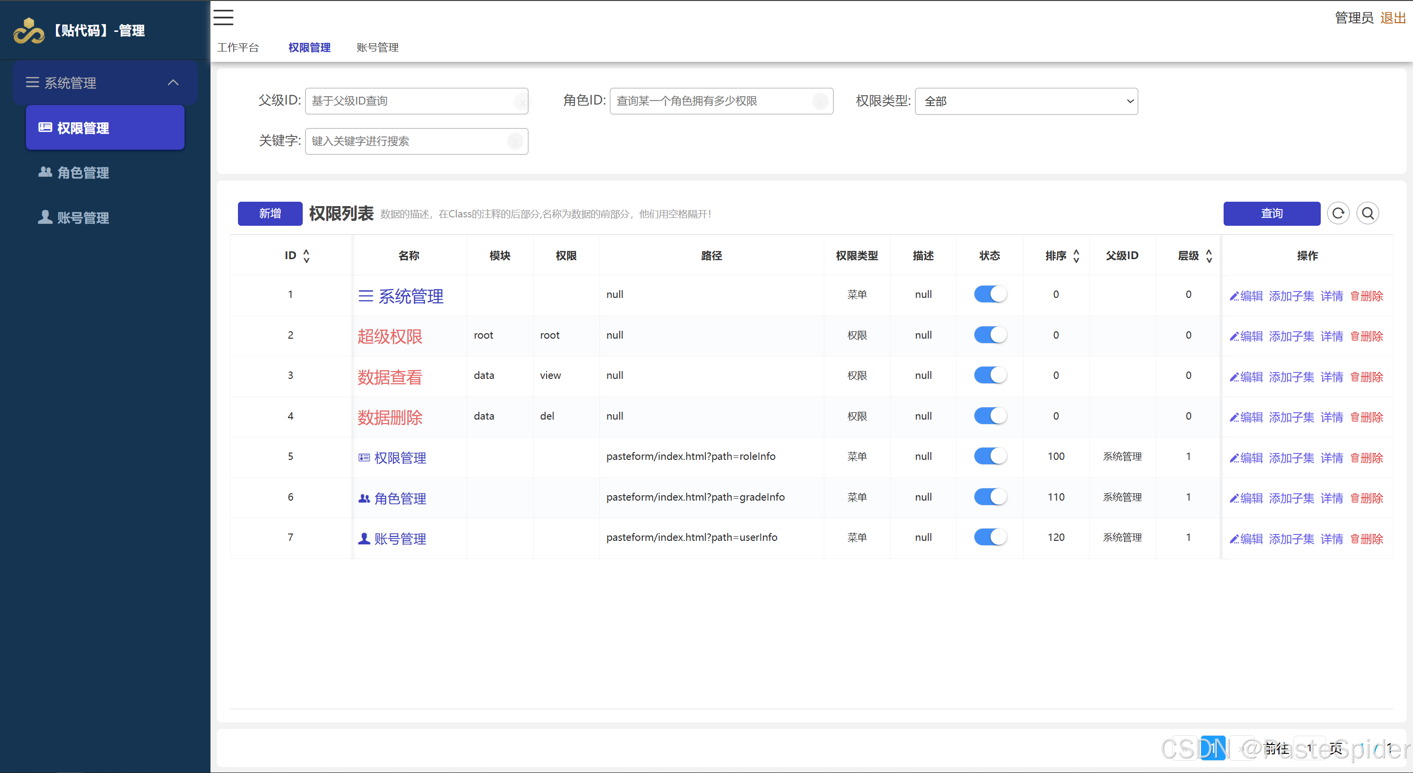 通过引入PasteForm,一个项目哪怕100个数据表,一般的管理页面也才不到10个,除非有非常多的特殊功能,否则都能用PasteForm中的表格和表单来实现!