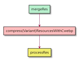 思路就是在是在 mergeRes 和 processRes 任务之间插入 WebP 压缩任务,利用 Cwebp 对图片在编译期间压缩。