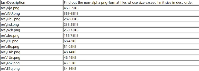 配置游戏中心的 Json,主要检测 APK 是否经过了资源混淆、不含 Alpha 通道的 PNG 文件、未经压缩的文件类型、冗余的文件、无用资源等信息。