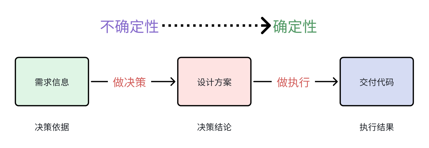 所以我们开发团队的整个流程就变成了“做决策”和“做执行”两件事,也是由“不确定性”到“确定性”的快速收敛的一个过程。