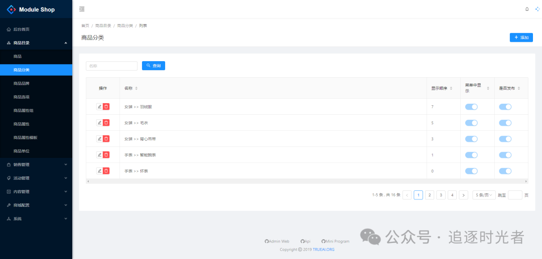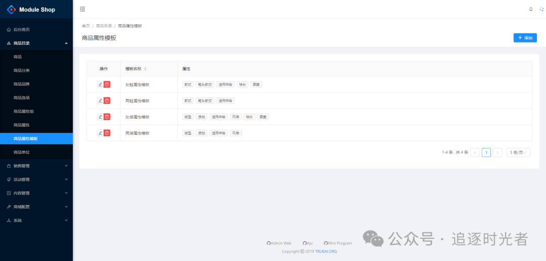 - 商品:分类、品牌、单位、选项(销售属性)、属性、属性模板、属性组等。