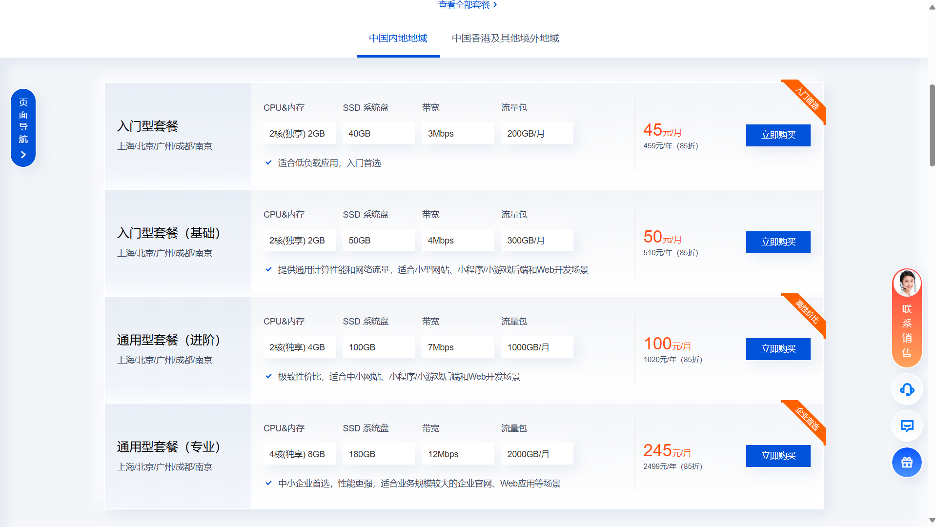 - 推荐配置:2核4G配置的三年套餐最具性价比,是开发测试环境的优质选择。