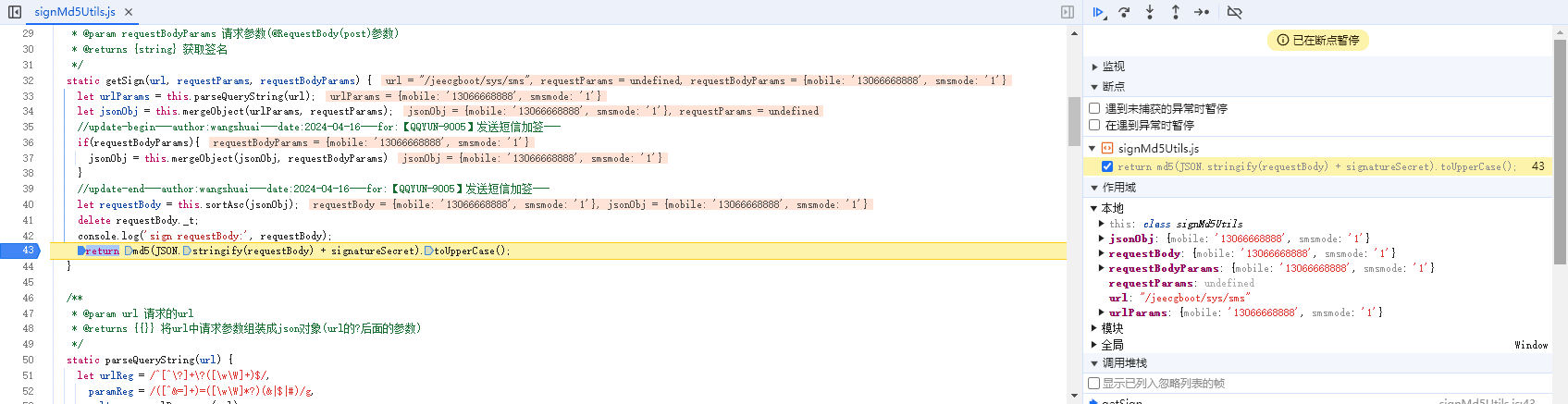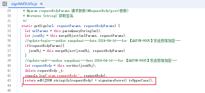 在signMd5Utils.js的第43行可以看到签名逻辑