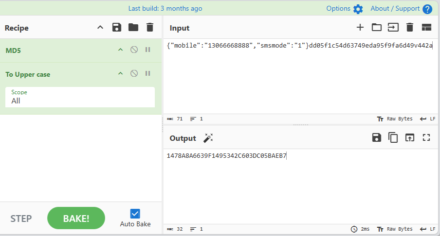 调试后可以看出签名逻辑和后端一样,都是将请求内容加上密钥,然后md5再大写处理。