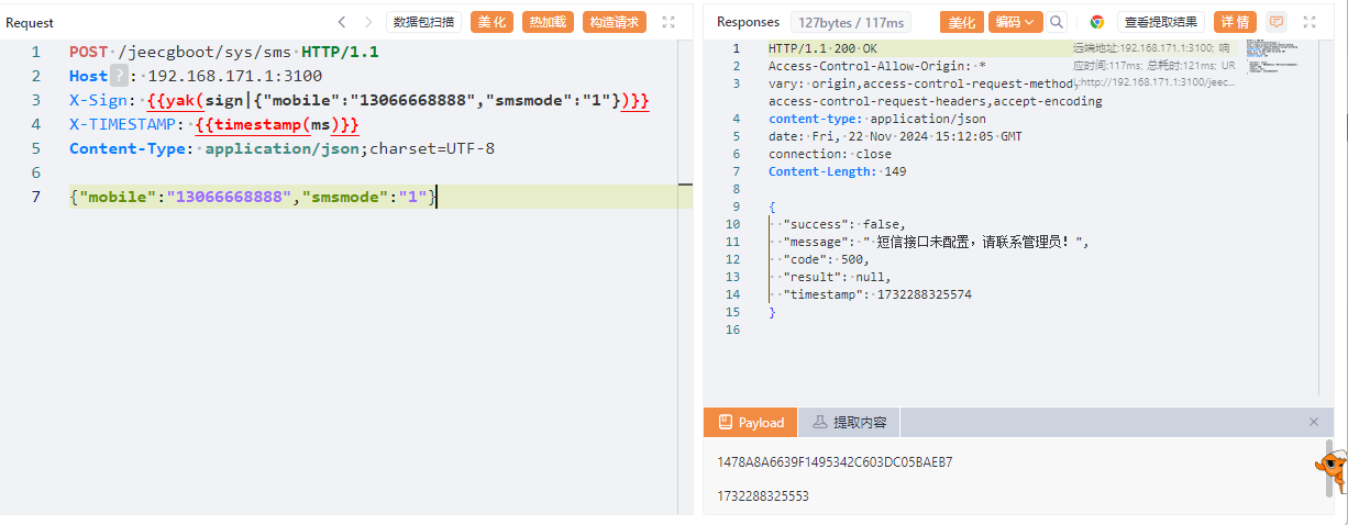 X-Sign: {{yak(sign|{"mobile":"13066668888","smsmode":"1"})}}