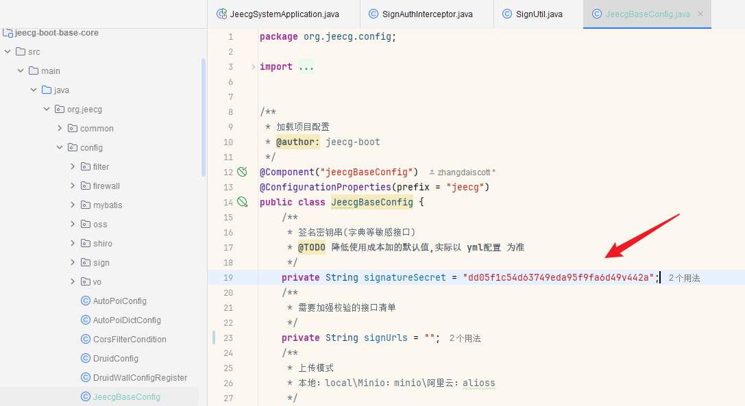 String signatureSecret = jeecgBaseConfig.getSignatureSecret();