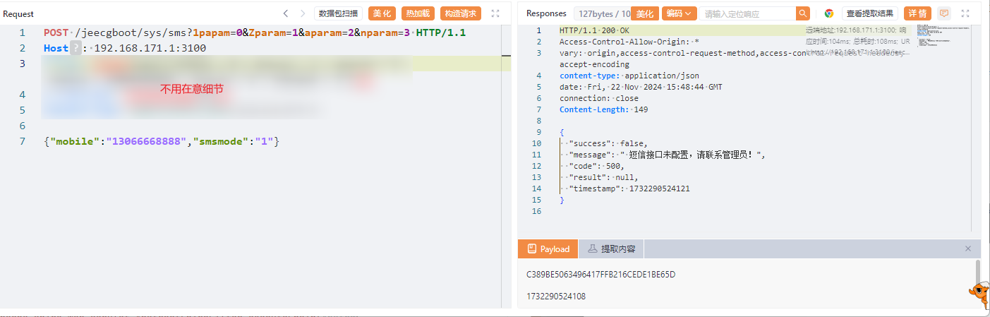 {"1papam":"0","Zparam":"1","aparam":"2","mobile":"13066668888","nparam":"3","smsmode":"1"}