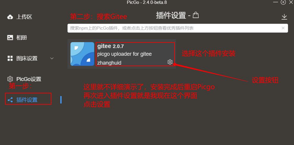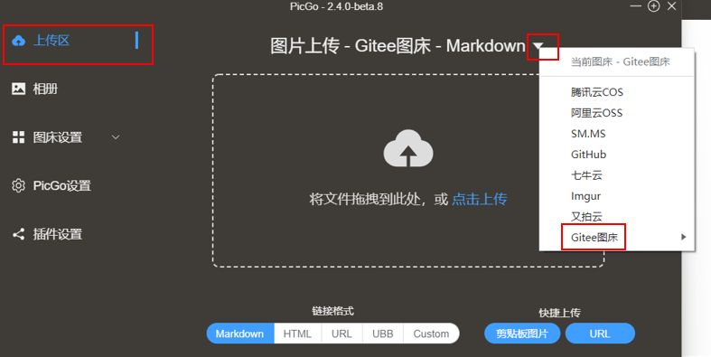 最后点击确定,Picgo就和Gitee建立链接了,首页选择Gitee图床