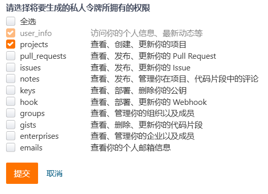 进入后点击生成新令牌,并设置令牌权限,点击提交