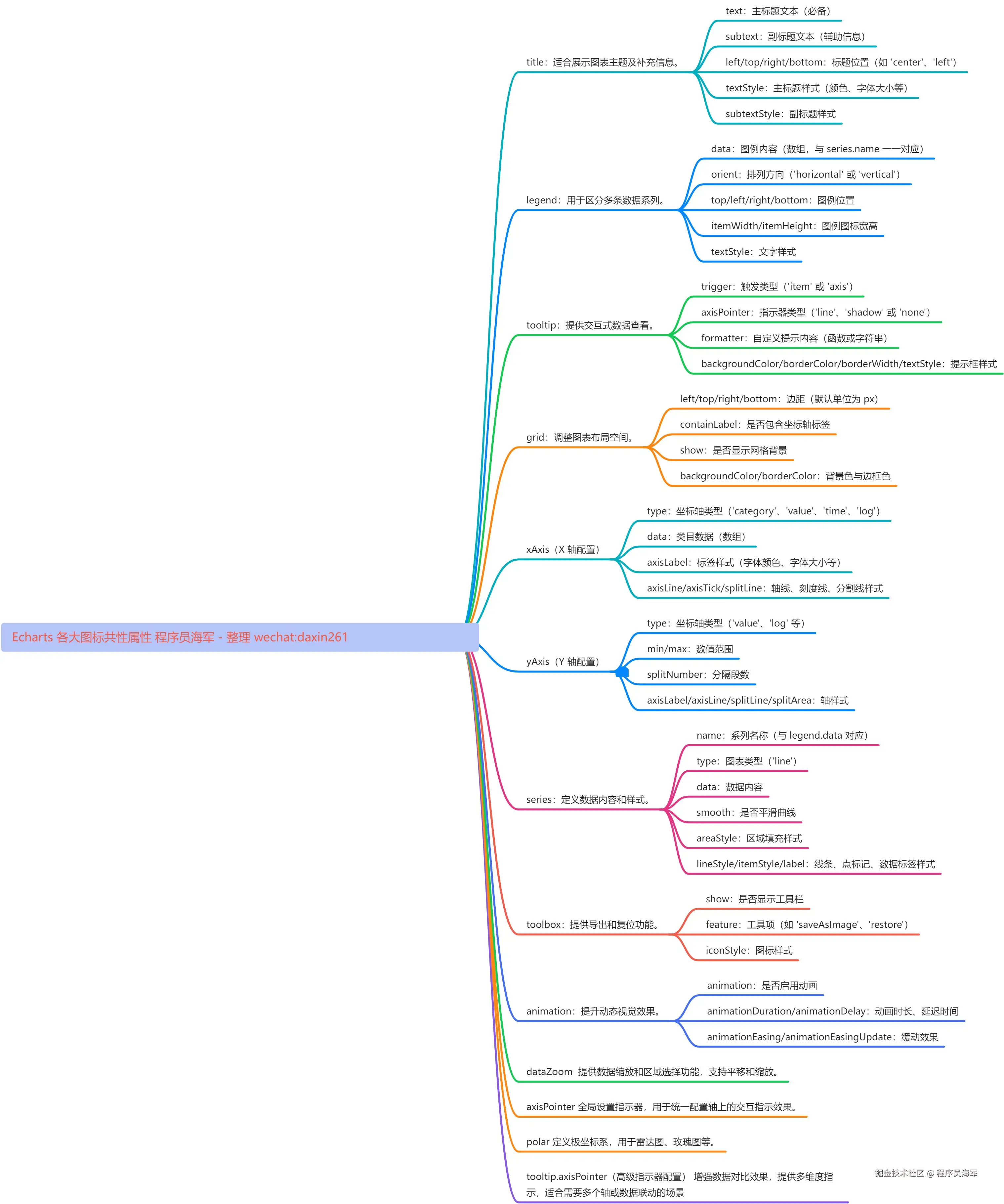 言归正传,近期我负责的公司人力资源系统中,薪酬统计模块的开发进度正稳步推进。在此过程中,我发现需要展示多种图表(如 ECharts)来直观反映数据。然而,ECharts 的配置过程相对复杂,频繁查阅官方文档不仅耗时,而且效率不高。为了提升开发效率,我萌生了这样一个想法:将 ECharts 中的一些通用属性进行提炼和整理,同时汇总常用的配置项以及在实际应用中需要注意的要点。这样一来,不仅能够简化配置过程,还能为团队提供一个便捷的参考指南。