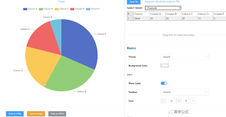 目前只有三种图表状态,可生成图片和JSON.