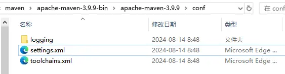 - conf:存放了 maven 的一些配置文件,如 setting.xml 文件