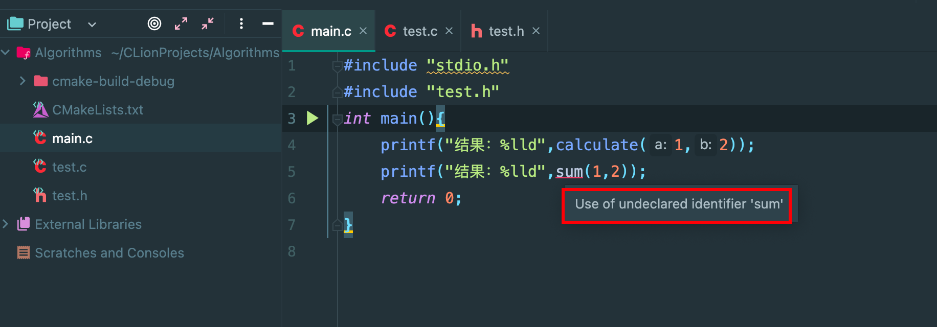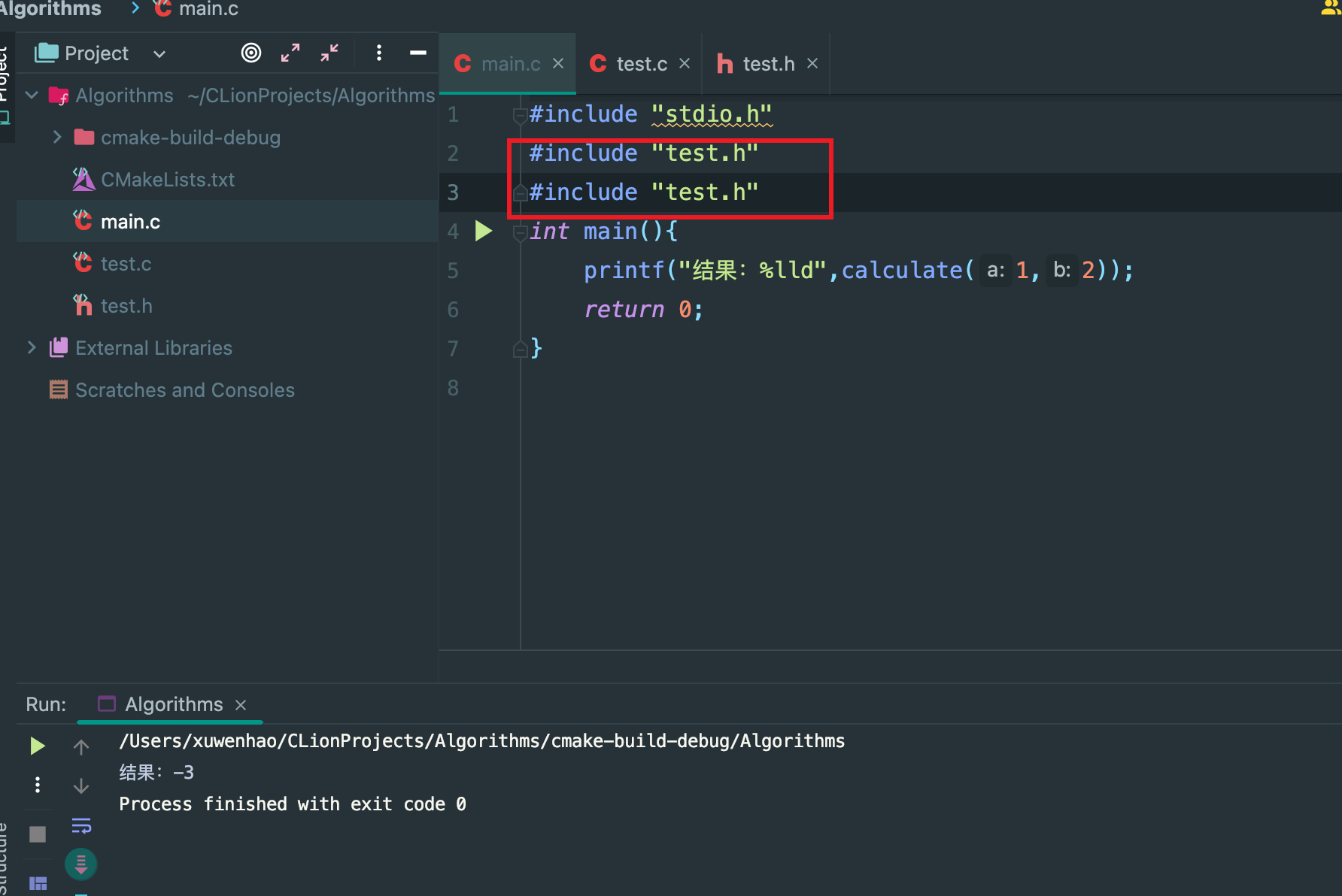 运行的代码 main.c ,可以正常计算结果为 -3: