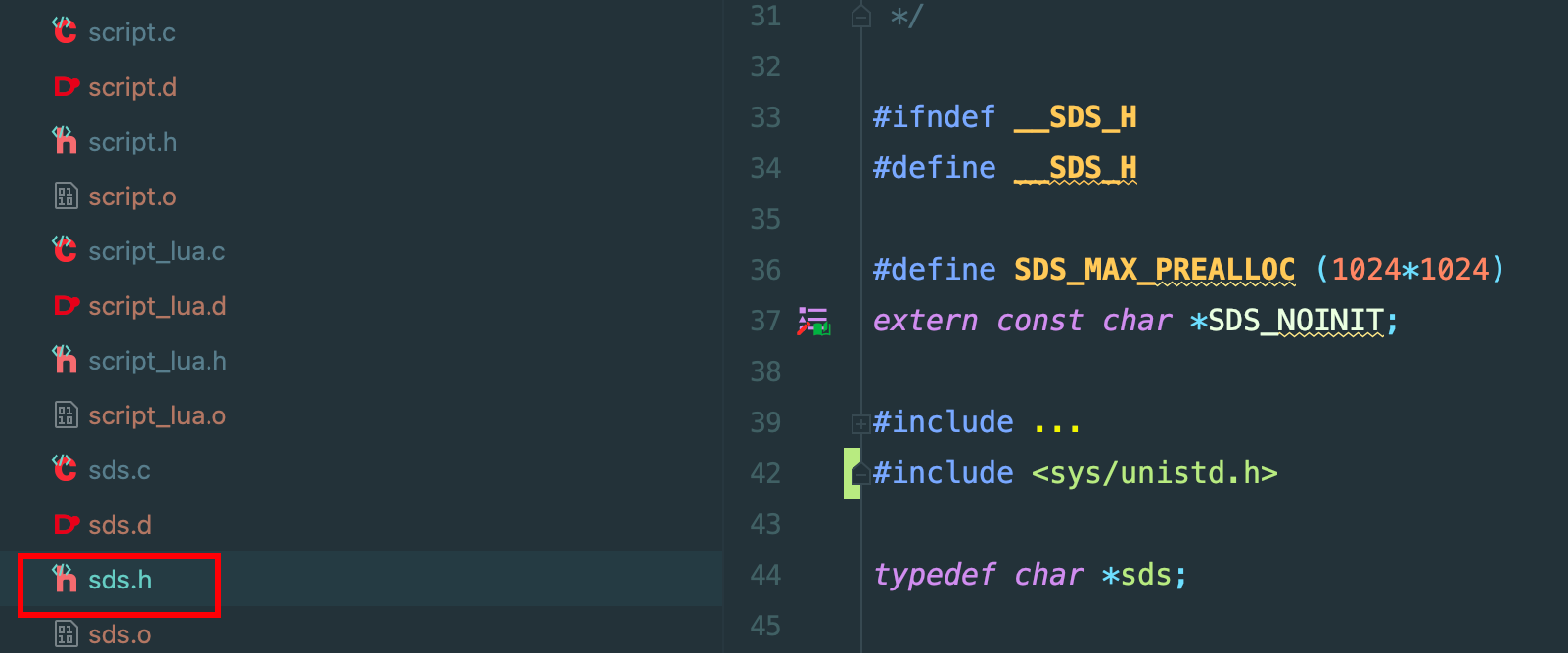 Redis 是使用 c 语言写的,里面有很多头文件: