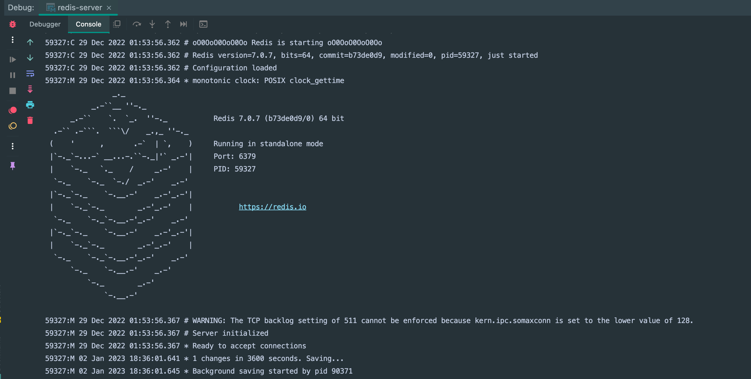 选择 debug 进行启动,启动成功,然后可以进行调试了: