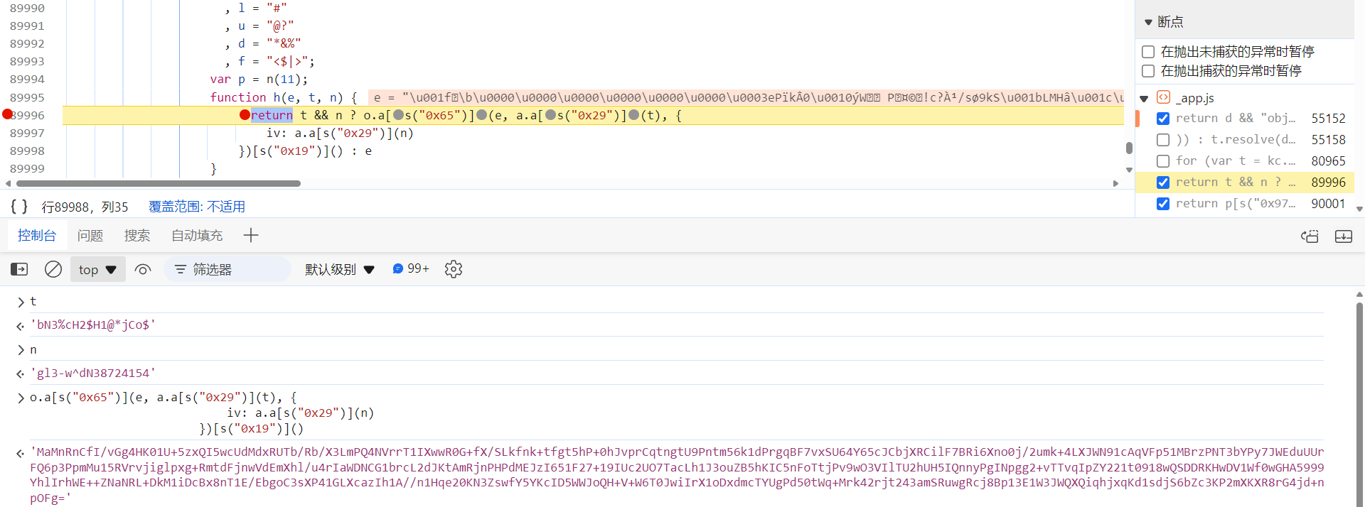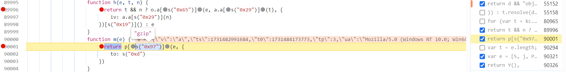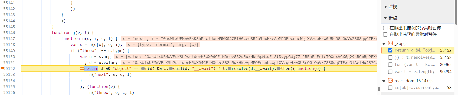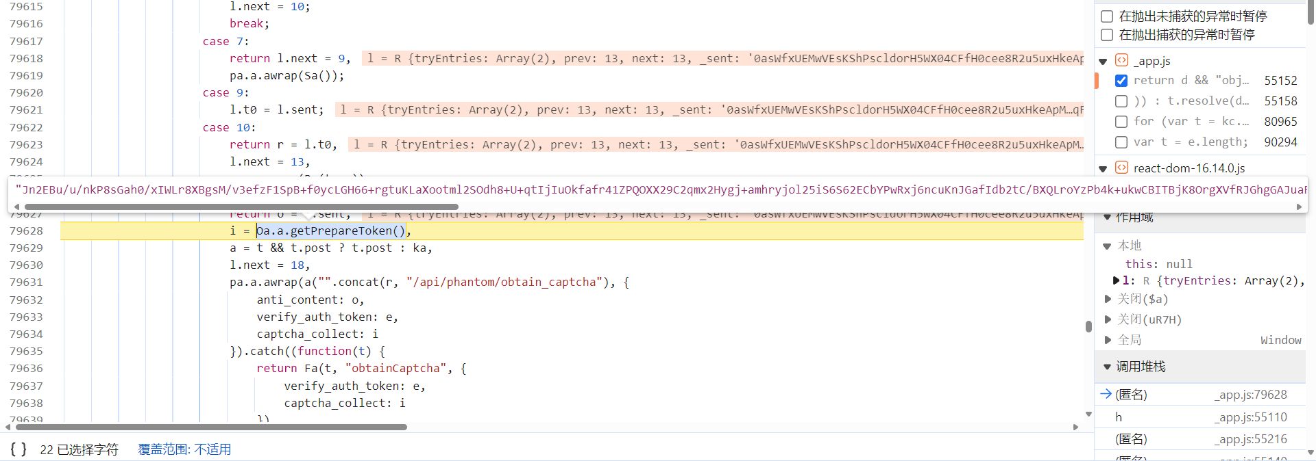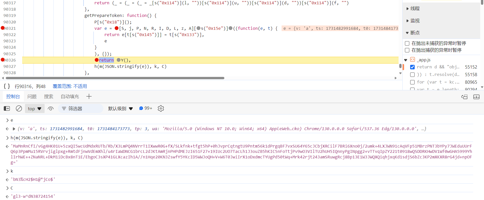 参数,跟栈调试,和前文一样,下个条件断点 i.includes('0as')