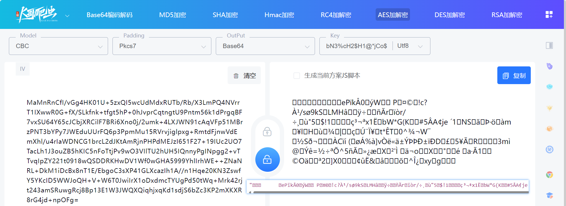 方法解密出了明文值,最终的结果替换掉特殊字符 @ 即可: