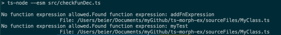 console.log(`No function expression allowed.Found function expression: ${node.name.getText()}