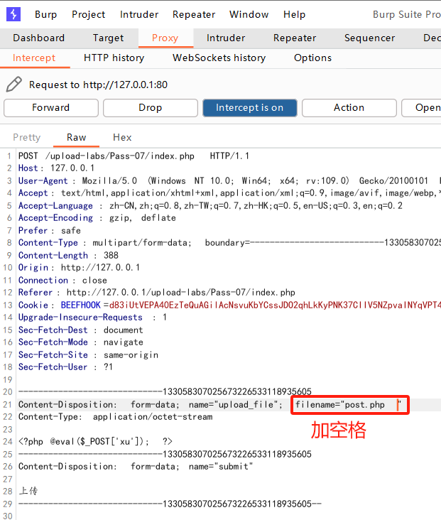 但是由于windows操作系统,在文件末尾加空格会自动删除,所以通过抓包改包