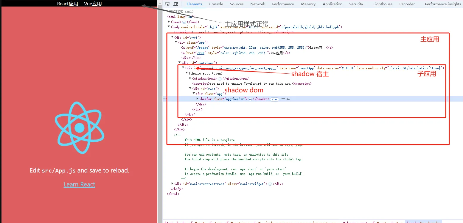 我们结合 乾坤小demo 实际演示一下,影子DOM到底有什么作用?