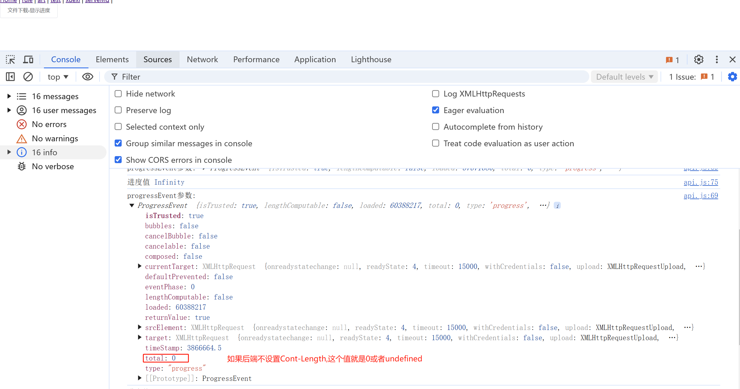 但是需要后端配合,在响应头中设置Content-Length属性,