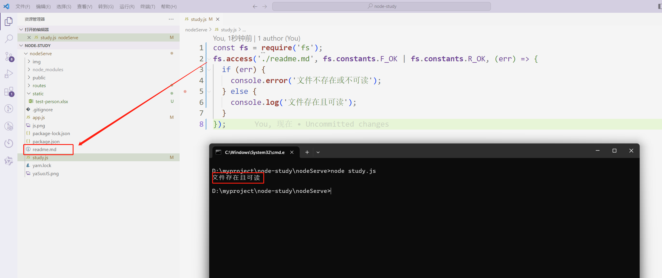 fs.access('./readme.md', fs.constants.F_OK | fs.constants.R_OK, (err) => {