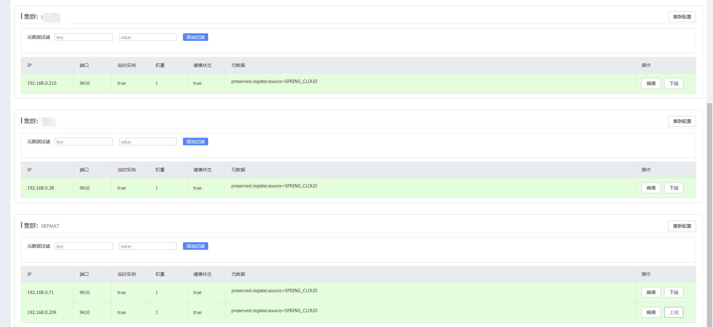 3.启动之后就可以在nacos上面就可以看到不同的集群服务
