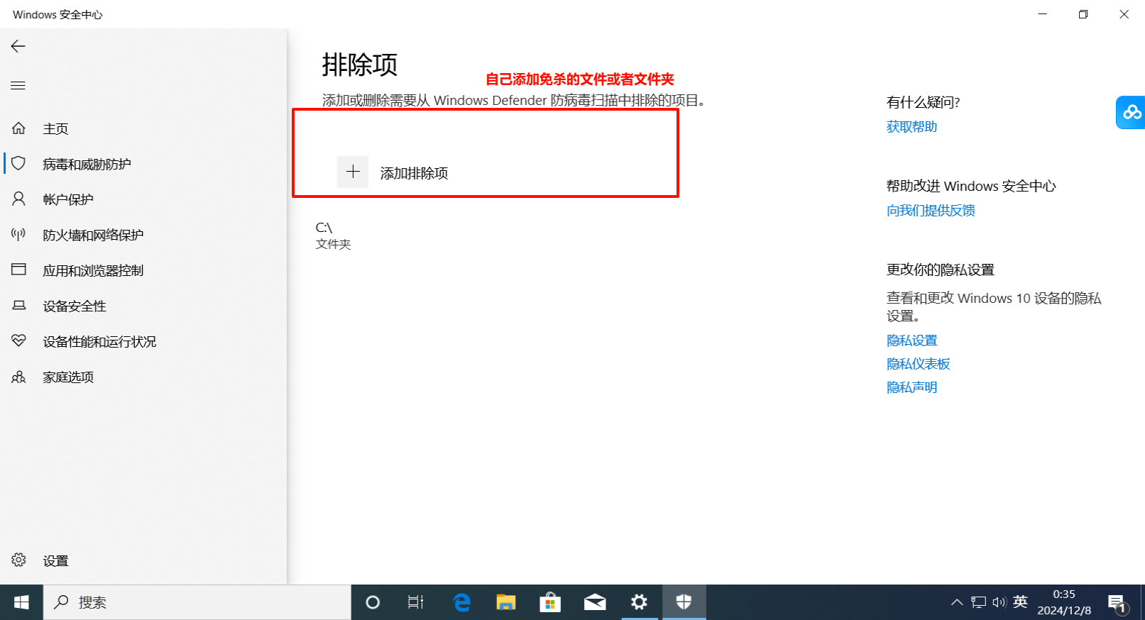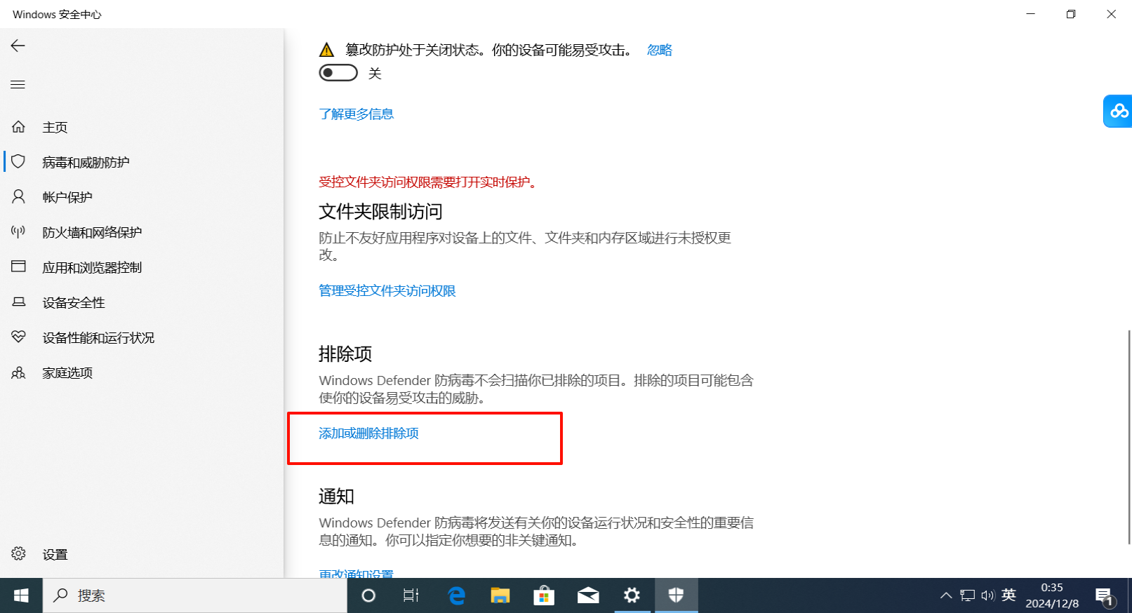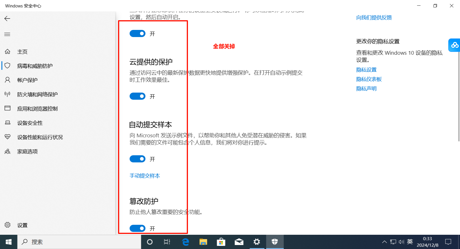 到底这里,就关闭windows自带的杀软了,如果有第三方软件,自动关闭或者卸载就好了