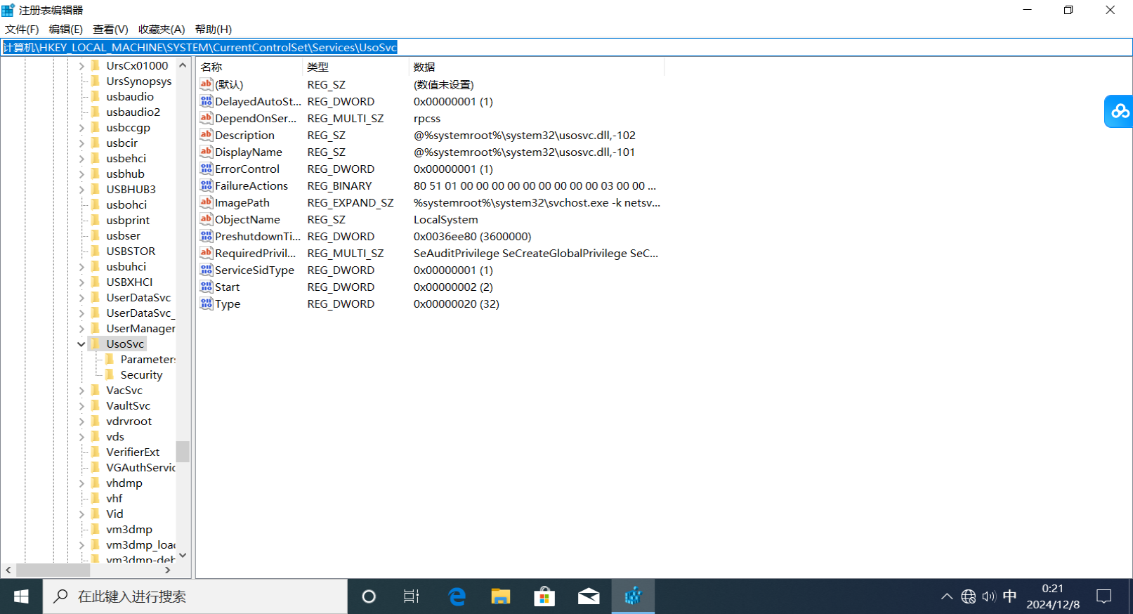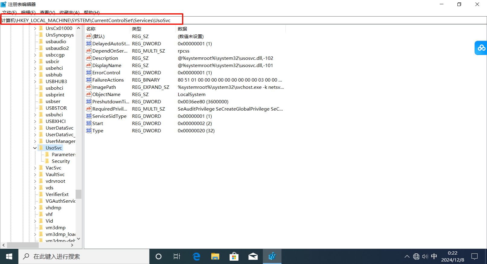 HKEY_LOCAL_MACHINE\SYSTEM\CurrentControlSet\Services\UsoSvc