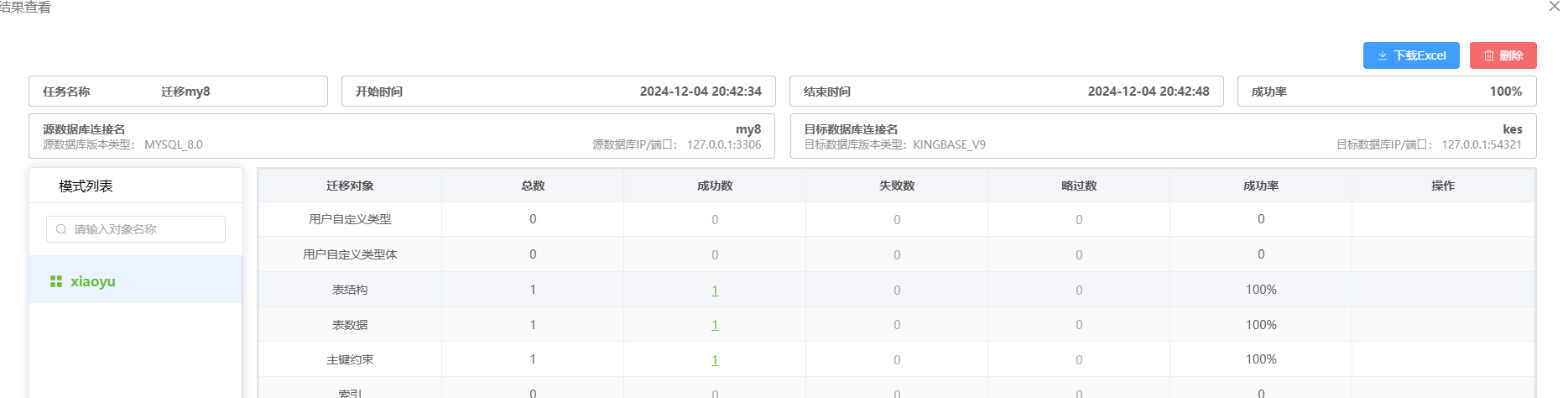 通过本次操作,我们成功地将MySQL数据库迁移到KES金仓数据库,并顺利完成了相关的配置和数据迁移。过程中,我们遇到了一些小问题,例如文件路径中的空格,但通过调整安装路径,问题得以解决。值得注意的是,配置数据源时需小心选择正确的数据库类型与兼容模式,避免不必要的错误。总的来说,金仓数据库的数据迁移功能使用简便,但需要仔细操作和检查细节,才能确保顺利完成迁移任务。