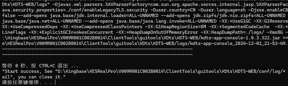 在本次操作中,我们主要使用的是金仓数据库提供的 KDTS 可视化工具。我们只需找到 KDTS 工具所在的文件夹,并直接双击运行其中的 .bat 启动文件即可。