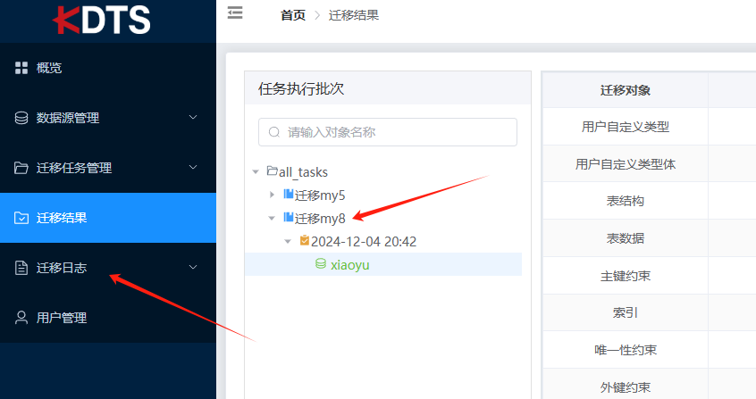紧接着,点击保存且迁移按钮后,等待任务启动,不要点击多次,他这里会有一些慢。然后,我们就可以去看下任务的迁移进度了,因为我这里是一个表,所以迁移的很快。