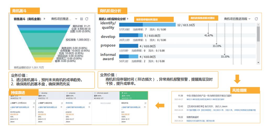 LTO(线索到订单)过程,纷享销客CRM支持商机精细化管理。从商机报备、评估、立项到推进,提供完整的数字化管理工具。通过商机阶段推进超时通知、各阶段停留时间监控等功能,企业可及时了解商机的进展情况,调整销售策略,确保商机顺利推进,提高赢单率。