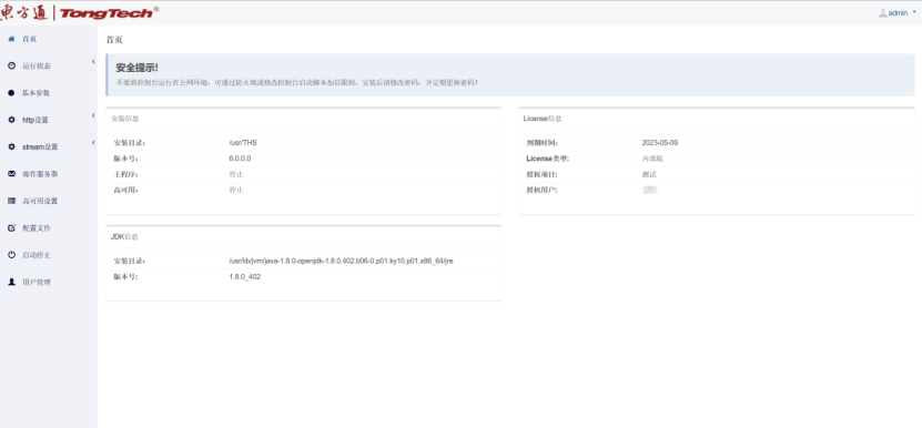 注:Httpserver服务启动需要有license.dat授权文件才能正常启动,官网自行申请:https://www.tongtech.com/sy.html##,授权获取后放在安装路径即可。
