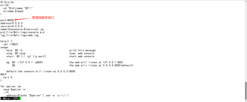 #$ more /usr/THS/bin/startConsole.sh #查看管理端服务端口