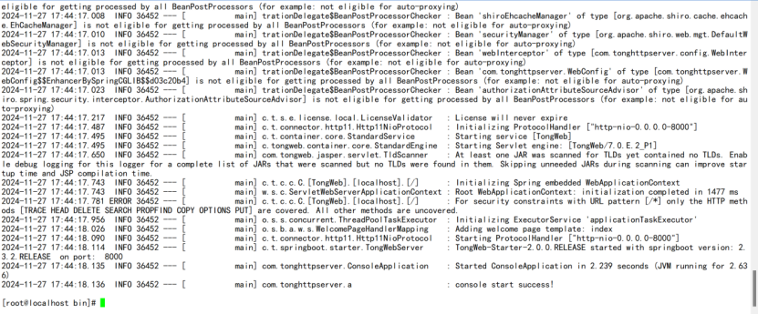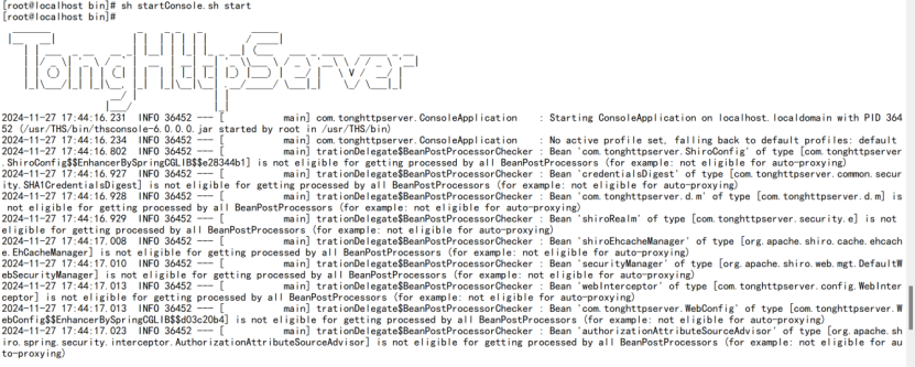#$ sh /usr/THS/bin/startConsole.sh start #如下图,服务启动成功