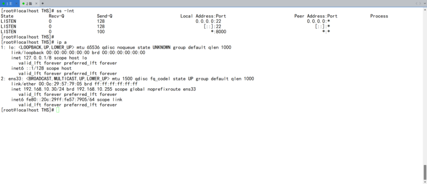 七、这里可以看到主备服务起来后,vip存在主设备中,至此高可用配置完成;