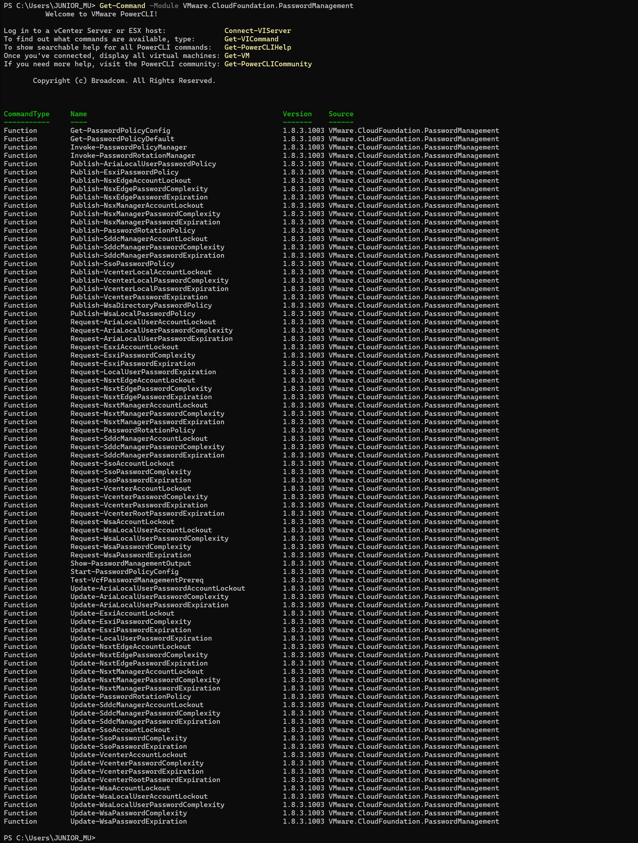 Get-Command -Module VMware.CloudFoundation.PasswordManagement